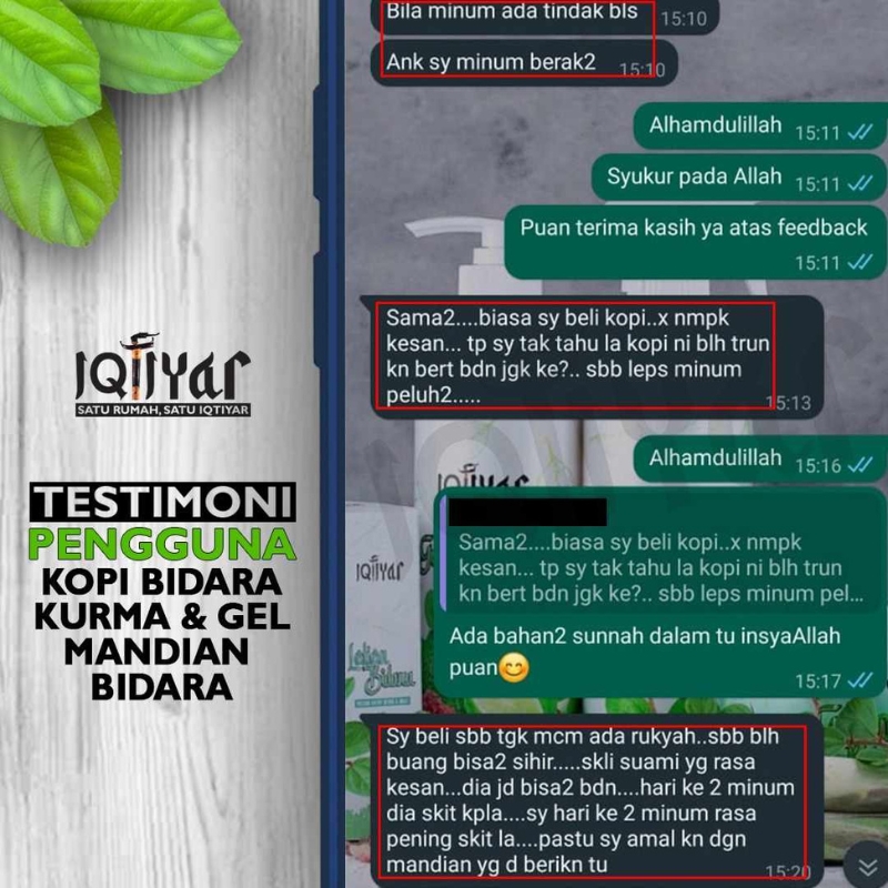 Sebab itu, kami bagi jaminan. Supaya takda siapa pun rugi dalam mencuba produk ini. Cubalah produk ni sekarang. Sekiranya… selepas dah amalkan selama 3 bulan. Kalau tak suka dengan kesan. Tak suka dengan apa jua sebab. Pulangkan balik.